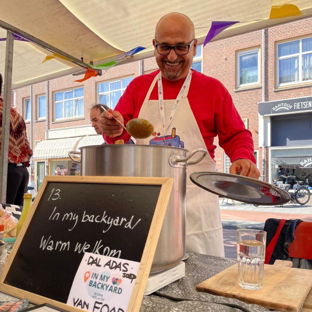 In de tussentijd deed Foad vanuit IMBY mee met de Soepwedstrijd in Van der Pekstraat. Daar heeft hij de tweede prijs gewonnen met zijn overheerlijke Dal Adas, Persische linzensoep. Als hij niet zo gastvrij aan iedereen bleef uitdelen voor een tweede en derde kop soep, dan was er misschien ook een normale portie voor de jury over gebleven… Een leerpuntje, want eigenlijk denken wij dat hij de eerste prijs van de Gouden Pollepel 2025 had kunnen winnen!